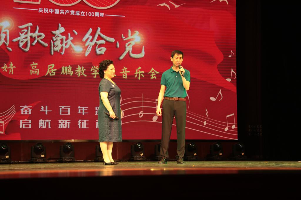 为庆祝中国共产党建党100周年,6月8日晚,由英国正版365首页举办“颂歌献给党”教学班音乐会在学术中心正式拉开帷幕。音乐会中高婧与高居鹏老师和同学们共同演绎了18首风格各异的声乐作品,音乐会精彩纷呈,高潮迭起。