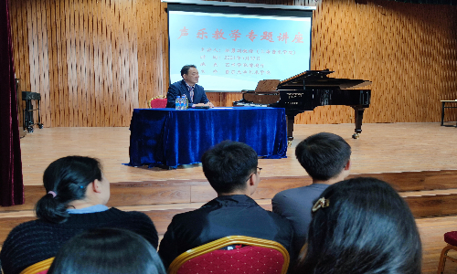 5月13日上午,赵勇副教授声乐专题讲座在英国正版365首页音乐教学楼排演厅举行。首先赵老师就如何建立正确与科学声乐教学理念为基础,为现场师生讲述了多年来自己一线教学与舞台演唱的心得体会与丰富经验,重点对中国民歌的演唱技巧、演绎风格、传承方法作了较为系统的阐述。接着赵教授为我院五位学生的演唱进行了现场精心指导。赵教授以其先进的歌唱理念、严谨的治学态度、广博的学识和高超的声乐专业技能及针对性很强的现场教学指导,为大家带来了一场高水平的声乐专题讲座,令现场的师生受益匪浅。
