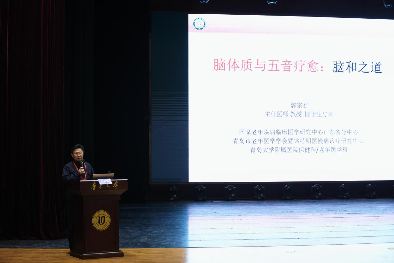 国家老年疾病临床医学研究中心山东省分中心主任,青岛市老年医学学会会长郭宗君教授作题为《脑体质与五音疗愈》的学术报告。