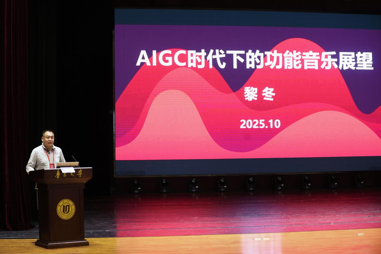 文化科技创新服务联盟音乐产业专委会主任马黎东教授做作题为《AIGC时代下的功能音乐展望》的学术报告