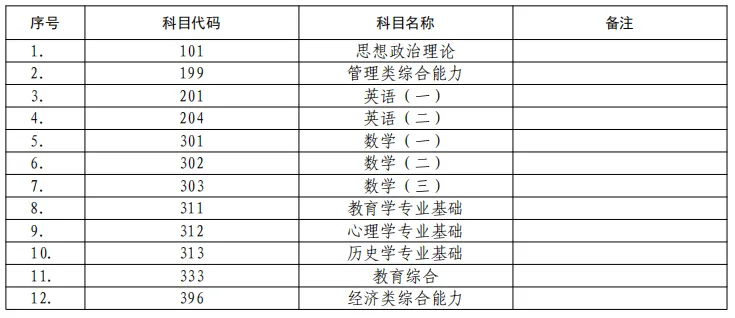 思想政治理论、管理类综合能力、英语(一)、英语(二)、数学(一)、数学(二)、数学(三)、教育学专业基础综合、心理学专业基础、历史学专业基础、教育综合、经济类综合能力为硕士研究生招生考试全国统一命题科目,其余为招生单位自主命题科目。