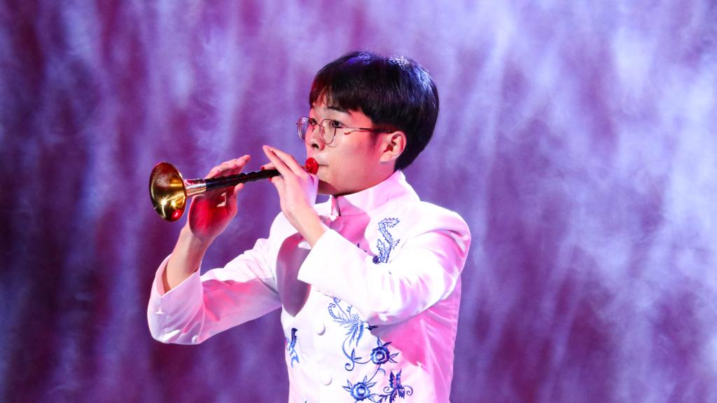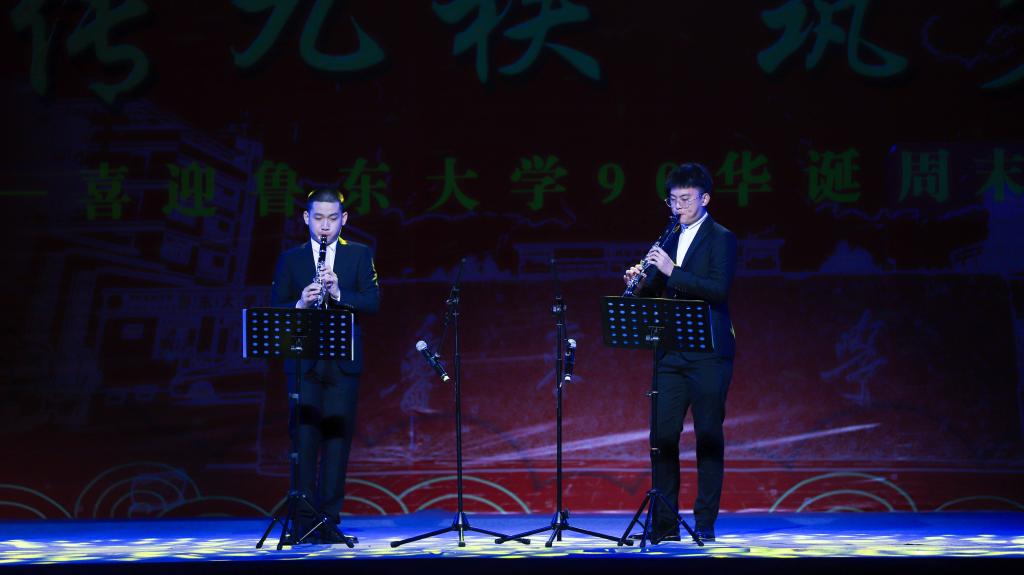 晚会在男声四重唱《红旗飘飘》中拉开序幕,女声独唱《敕勒歌》、舞蹈《草原夜色》舞姿轻盈,歌声雄浑,是向祖国母亲的深情告白,深情表达了鲁大师生感党恩、跟党走,祝福祖国、建设祖国的赤子情怀;唢呐、京胡、二胡以及单簧管演奏,曲调优美,情感细腻,传递着青春的热情和希望;男声独唱《向往》用高亢明亮的嗓音和拳拳赤子之心唱出了鲁大师生坚定理想信念,不忘初心、牢记使命的精神风貌。最后,合唱《相亲相爱》将晚会气氛推向了高潮。