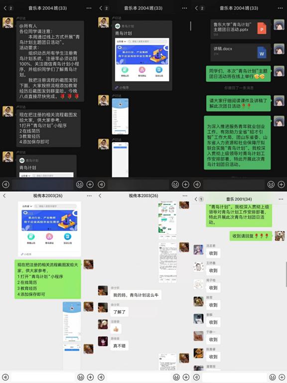 各团支部运用腾讯会议APP,以ppt、视频、知识竞答等形式,围绕团省委通知精神,向同学们详细介绍了青鸟计划的报名方式、报名流程以及青鸟计划的重大意义,积极鼓励大家关注并参与青鸟计划。本次活动极大地激发了同学们的就业热情和动力,使同学们明确了就业任务、要求与方向,为就业搭建了良好的交流平台。