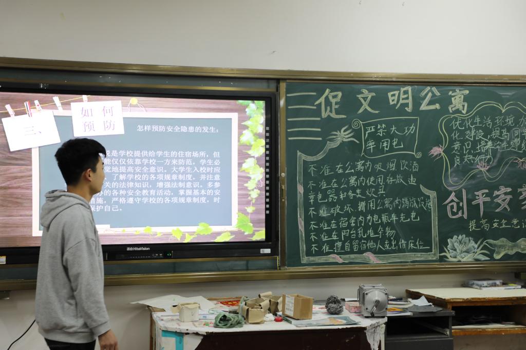 此次活动旨在向同学们宣讲寝室卫生评比活动的标准及注意事项,让同学们重视寝室环境卫生,提高安全防范意识,建设弘扬正气、团结友爱、安全文明的寝室环境。各班通过团支书讲解,学委辅助演示,播放ppt、演讲等多种方式让同学们深入学习宿舍安全的重要性。各班还结合学校出台的“十不准”条例,明确了宿舍行为准则。活动过程中同学们积极探讨宿舍各种隐患带来的种种安全问题,相互交流自己的观点,极大地提高了大家对宿舍安全的重视。本次团日活动增强了同学们的安全卫生意识,提高了同学们的自我防护能力,使同学们对疫情防控和公寓卫生安全有了更加深刻的认识,有利于在全院形成以“争创健康文明宿舍”为荣的氛围。