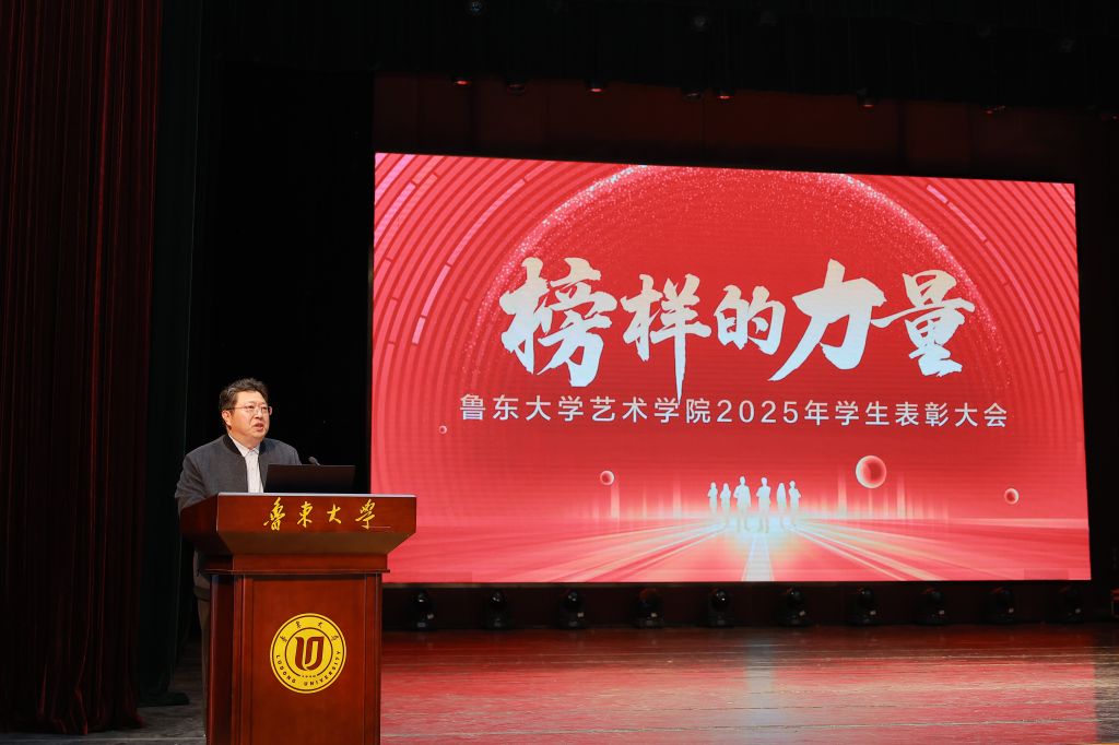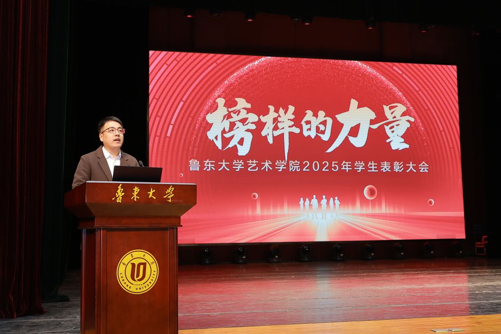 颁奖仪式后,于钦凯书记作总结讲话。他指出,本次表彰大会既是一场致敬荣誉的盛会,更是一次凝聚精神、启迪未来的重要契机。受到表彰的学子在专业学习、集体服务、社会实践等领域展现出的扎实功底、责任担当与奉献精神,是学院“崇德尚艺、砺志笃行”育人成果的生动体现,更是全体同学可学可及的精神标杆。针对青年学子成长发展,于钦凯书记提出四点希望:一是以榜样为镜,坚定理想信念,涵养高尚品格,将个人艺术追求融入国家发展、民族复兴的伟大事业,做德艺双馨的追光者;二是以榜样为灯,深耕专业领域,锤炼过硬本领,摒弃浮躁心态,沉心钻研专业知识与技能,以扎实本领回应时代呼唤;三是以榜样为炬,勇于担当作为,传递青春力量,在校园中营造比学赶超的良好氛围,在社会中以艺术特长服务群众、奉献社会;四是以榜样为帆,坚守初心使命,逐梦星辰大海,树立终身学习理念,在艺术追梦路上不畏艰难、勇于拼搏。他勉励获奖集体和个人珍惜荣誉、戒骄戒躁,发挥模范带头作用;希望全体同学以2026年为新起点,向榜样看齐,在艺术的殿堂里勤学苦练,在青春的赛道上奋力奔跑。