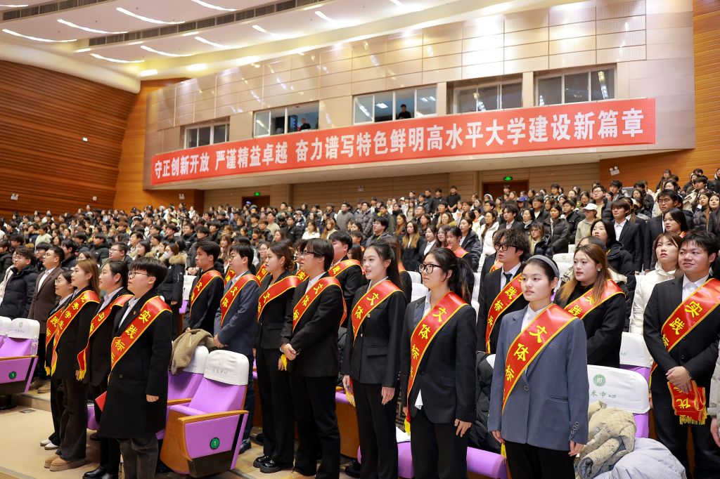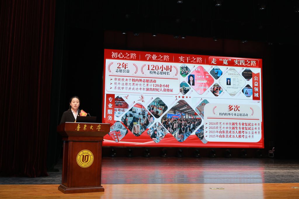 榜样是前行的灯塔,是奋进的力量。优秀学生代表依次登台分享成长感悟。实践标兵研究生代表马鑫悦讲述了躬身实践、以志愿服务传递温暖的经历,展现了实践中的青春担当;学习标兵王新巧分享了勤学善思、深耕专业的学习经验,为同学们指明了奋进方向;文体标兵靳若晴以生动的分享展现了艺术学子在文体活动中绽放的青春风采;优秀学生干部付智双诠释了学生干部“服务同学、凝聚集体”的初心与使命;优秀实践团队代表柏硕讲述了“石榴花开 丝路同行”社会实践团队扎根基层、跨越千里传递温暖的故事,彰显了青年团队服务社会的责任与担当,赢得现场阵阵掌声。
