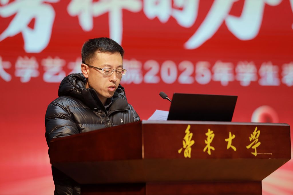 随后,学院党委副书记、副院长李文杰发表致辞。他代表学院对过去一年在教学、科研、育人等领域取得的丰硕成果进行了总结,同时,他高度肯定了全院学子秉承“厚德、博学、日新、笃行”校训,在专业学习、艺术竞赛、志愿服务、学生工作等方面展现出的“德高艺美、智圆行方”的精神追求,勉励全体同学以榜样为镜,在坚守中沉淀,在创新中突破,在奉献中成长,让青春在艺术追梦路上绽放绚丽之花。